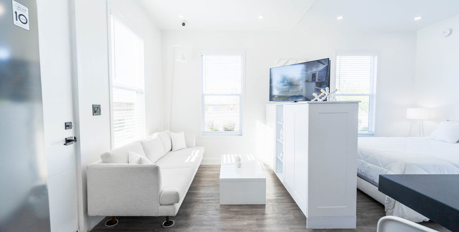 The BOXABL Casita (Two-door) ADU is a testament to the high desert of New Mexico, compact living, designed by BOXABL to merge sophistication with functionality. This modular home is tailored to meet a variety of living needs, offeringan adaptable space that does not compromise on style or comfort.